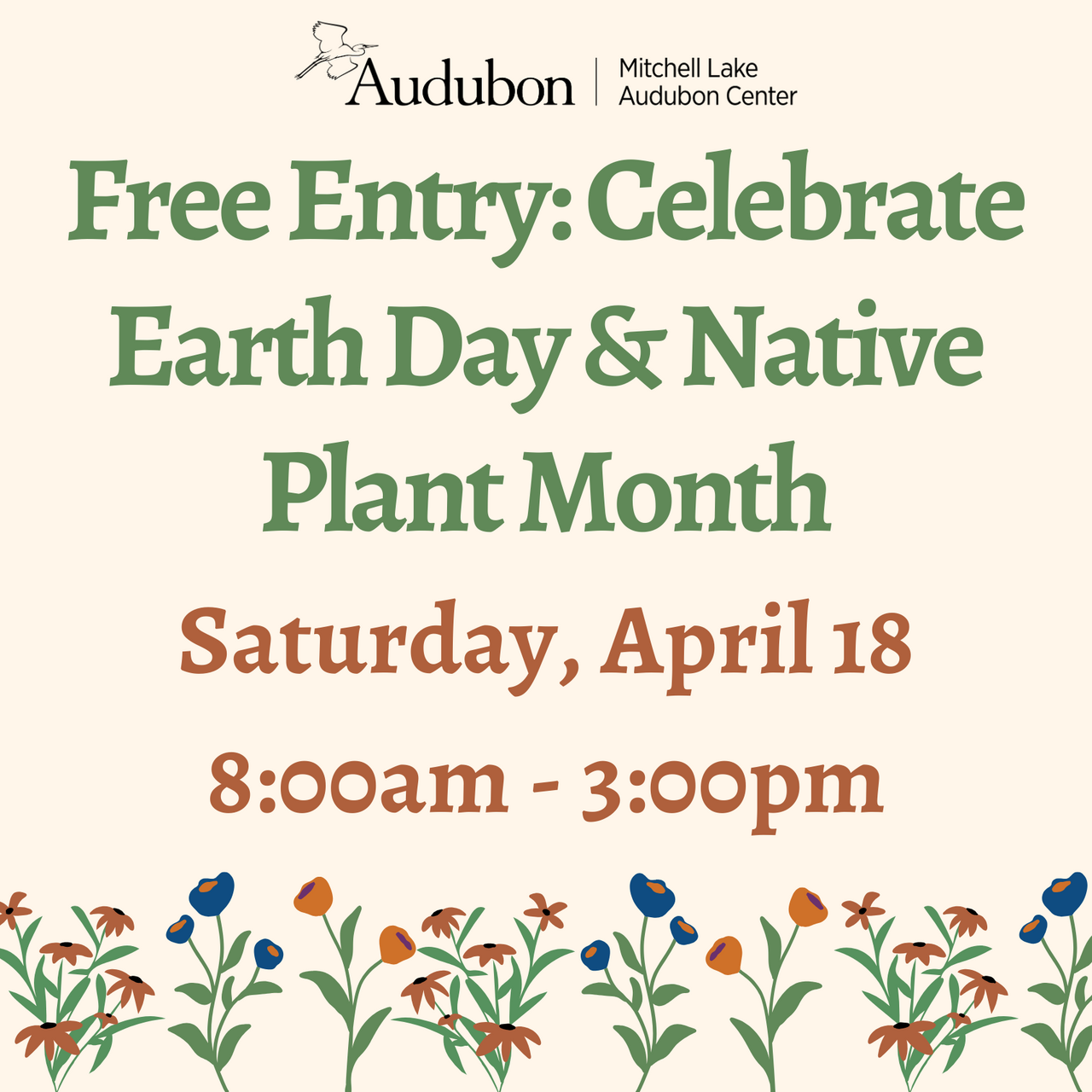 Get outside to celebrate Earth Day and Native Plant Month and enjoy free entry all day at Mitchell Lake Audubon Center. Take home native pollinator plant educational material to learn what plants would work best in your space. Free native seed packets while supplies last!