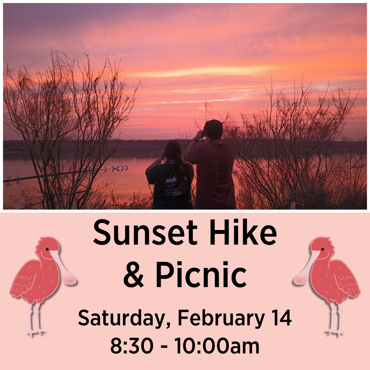 Celebrate the sights and sounds of nature with your partner. A sunset bird walk, led by expert birders, followed by a picnic dinner and dessert, which includes your choice of non-alcoholic beverage and glass of wine for guests 21+. Enjoy your meal and company in our native pollinator gardens as the sun sets. Dress for walking outdoors and enjoying nature. Each attendee receives raffle ticket for special prize at the end of the evening. $60/couple.
